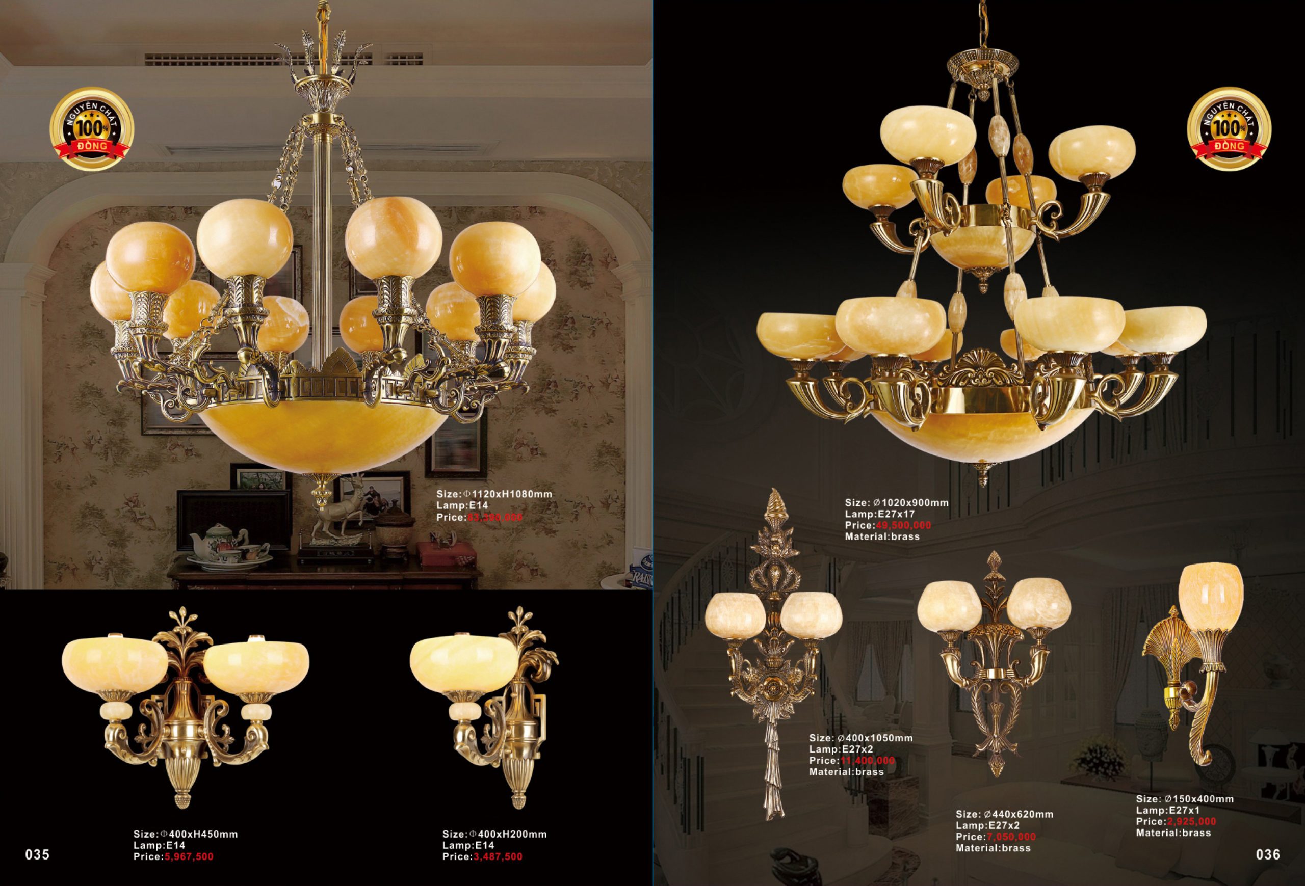 Đèn chùm bằng đồng, đá 18