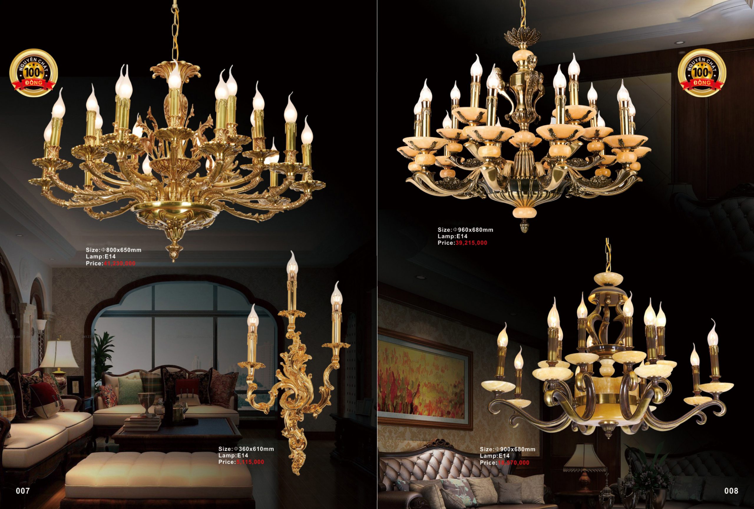 Đèn chùm bằng đồng, đá 5 n nThân đèn bằng đồng nguyên chất cao cấp. n n n n