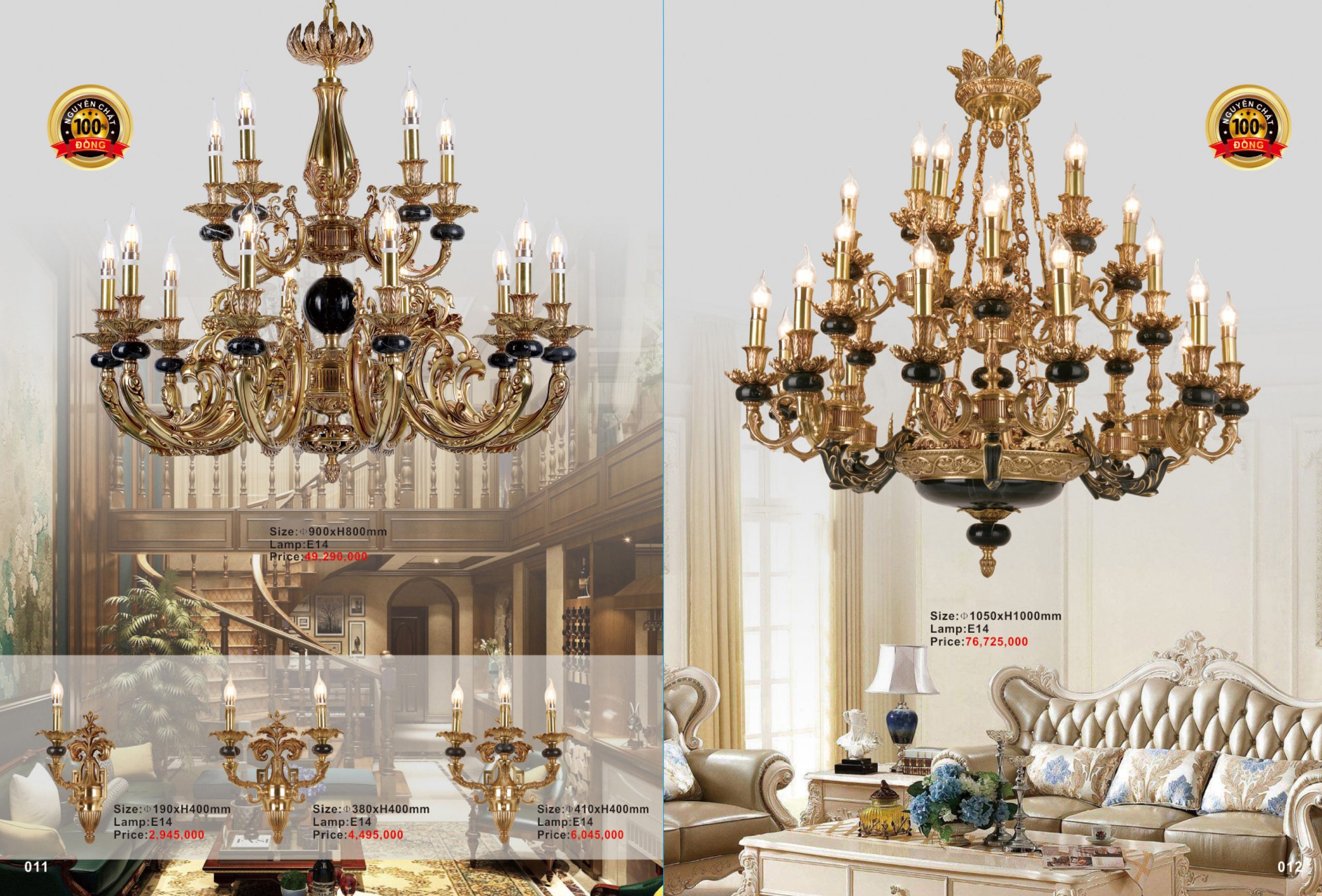Đèn chùm bằng đồng, đá 8