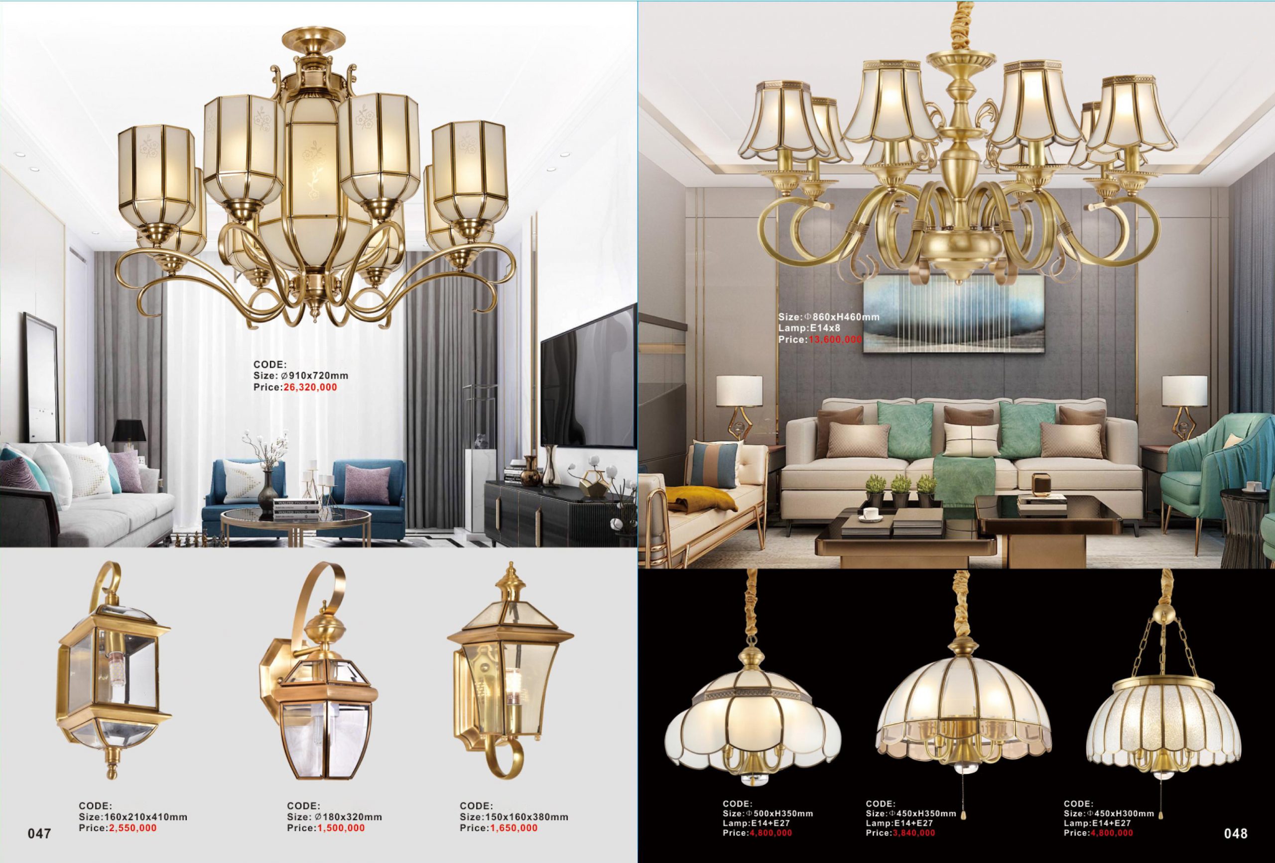 Đèn chùm, đèn thả, đèn vách bằng đồng, pha lê 1