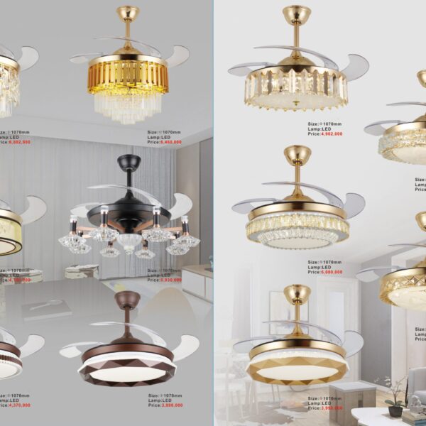 Quạt trang trí, kiểu cổ điển, kiểu hiện đại, cánh gỗ, cánh hợp kim, cánh nhựa cao cấp